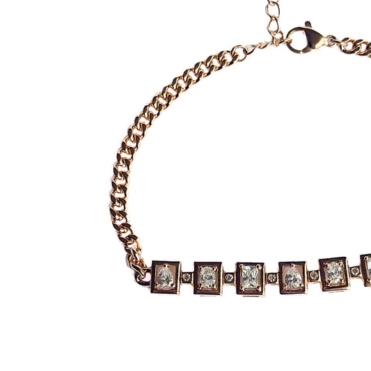 PULSO ORO LAMINADO 18K CON PIEDRAS CUADRADAS BISELADAS