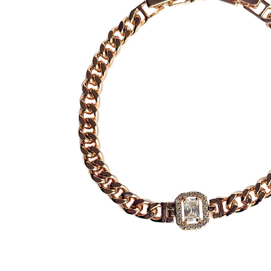 PULSO ORO LAMINADO 18K CUBANA PIEDRA BLANCA RECTANGULAR