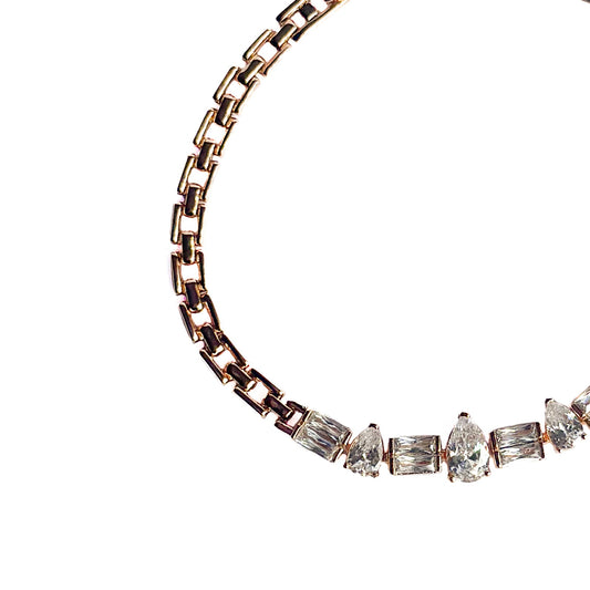 PULSO ORO LAMINADO 18K PIEDRA GOTA Y RECTANGULO ALTERNADO