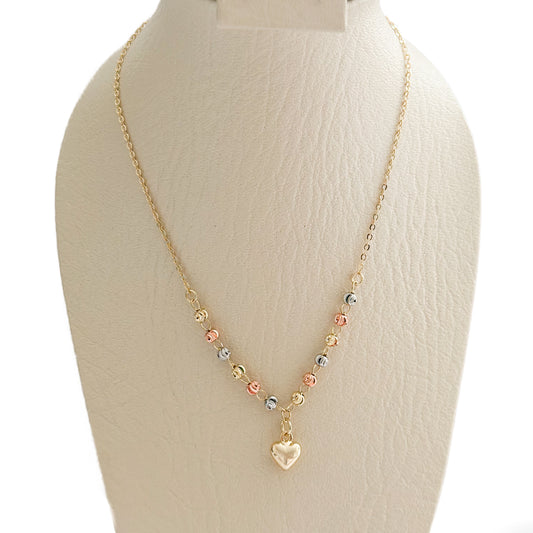 GARGANTILLA ORO LAMINADO ESFERAS CON CORAZÓN COLGANTE