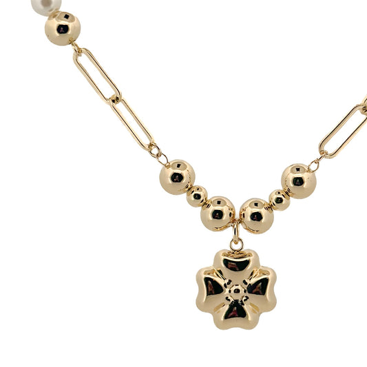 GARGANTILLA ORO LAMINADO ESFERAS CON TREBOL COLGANTE