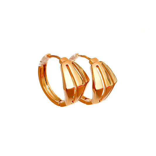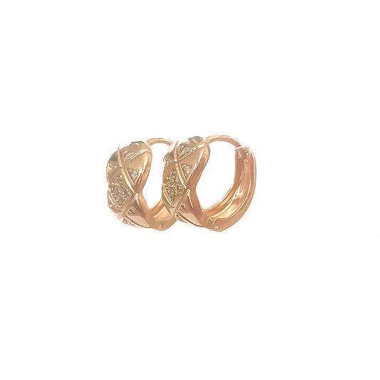 HUGGIE ORO LAMINADO DISEÑO 18K ROMBO PIEDRA BLANCA