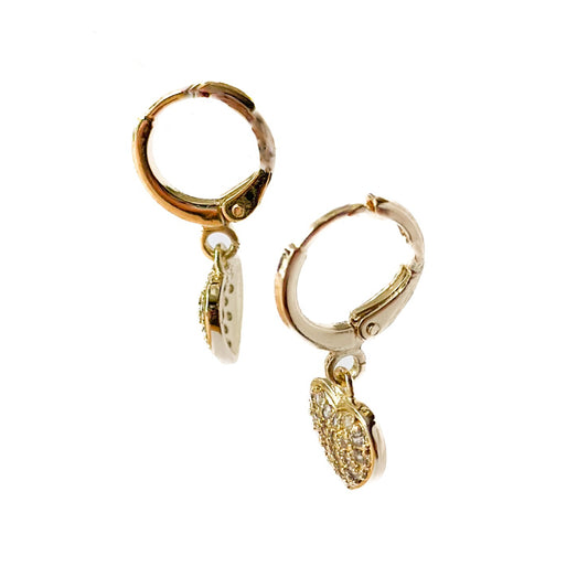 HUGGIE ORO LAMINADO CORAZON CON PIEDRA COLGANTE