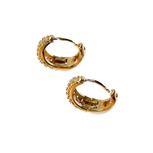 HUGGIE ORO LAMINADO DISEÑO 18K PIEDRAS BLANCAS
