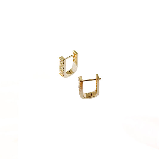HUGGIE ORO LAMINADO RECTANGULO CON CUADRO DE PIEDRAS