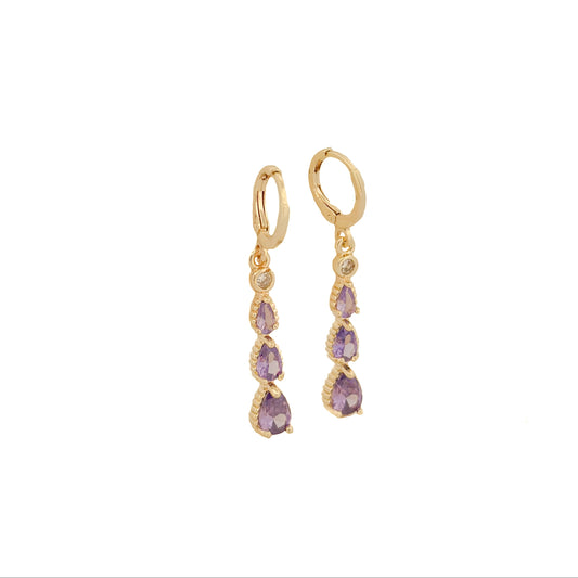 HUGGIE ORO LAMINADO GOTAS MORADAS COLGANTES