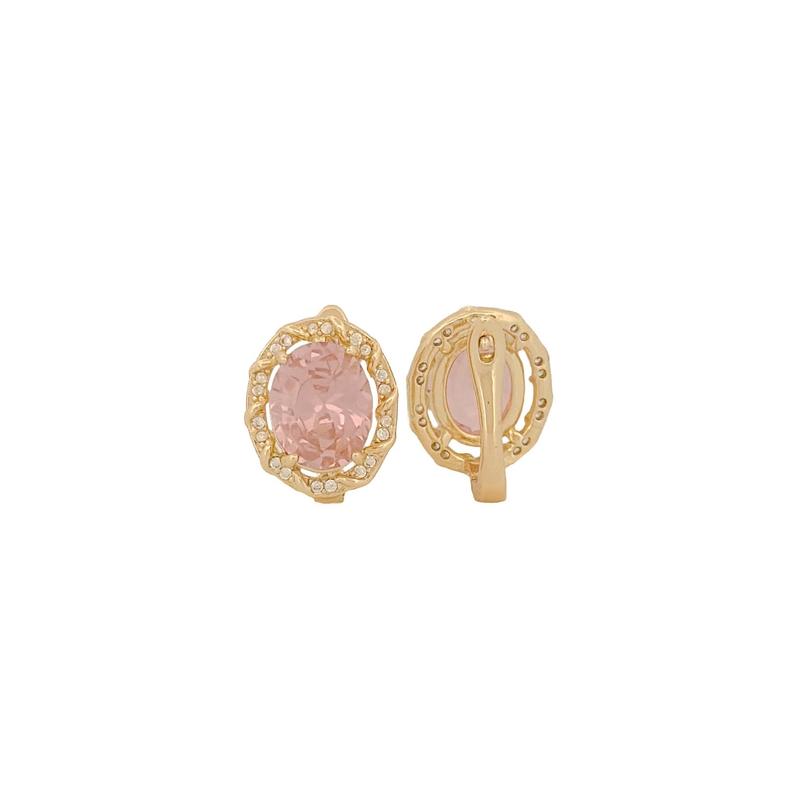 HUGGIE ORO LAMINADO PIEDRA OVALADA ROSA DIAMANTADA