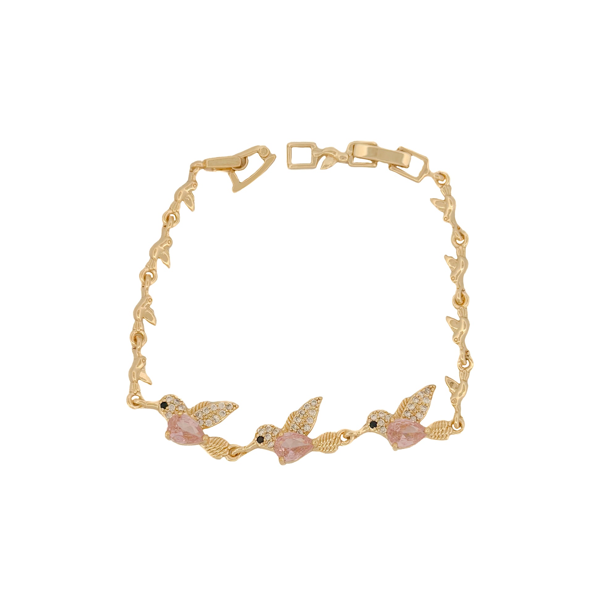 PULSO ORO LAMINADO COLIBRÍ CON PIEDRA ROSA