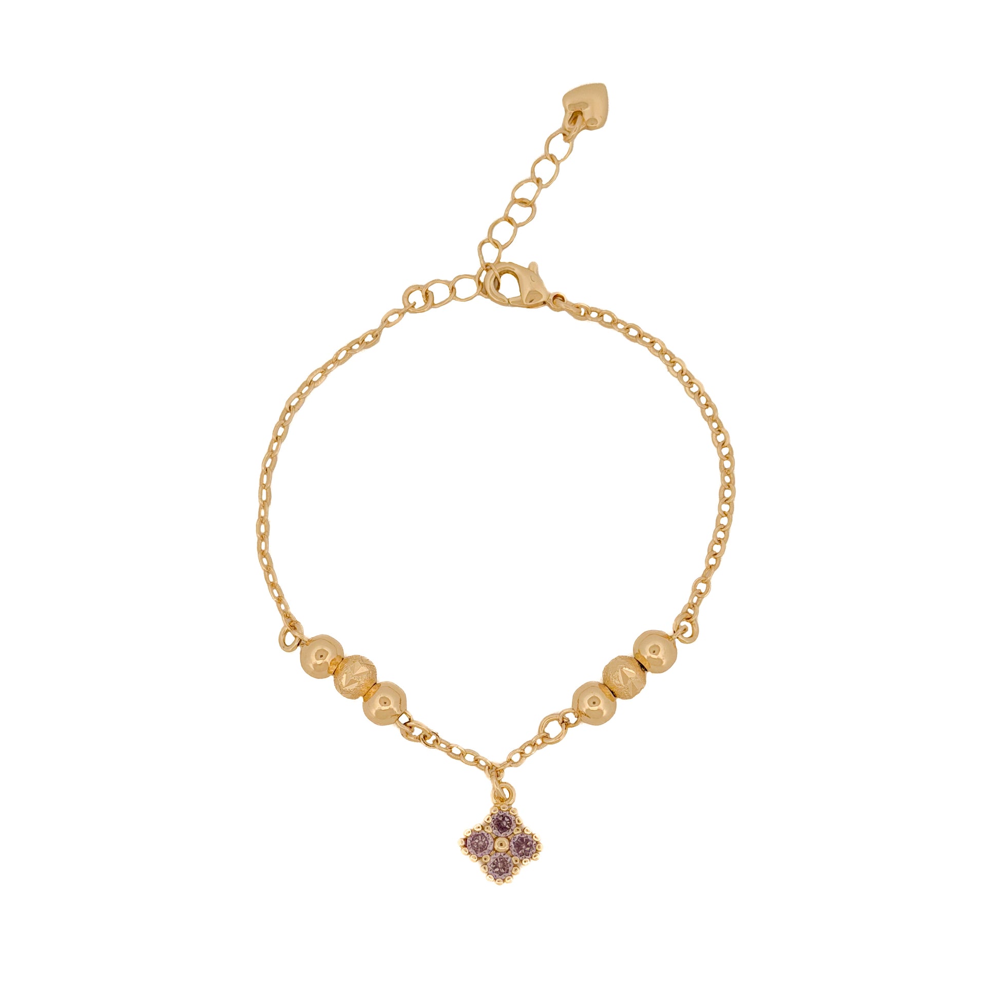 PULSO ORO LAMINADO TRÉBOL 4 PIEDRAS MORADO