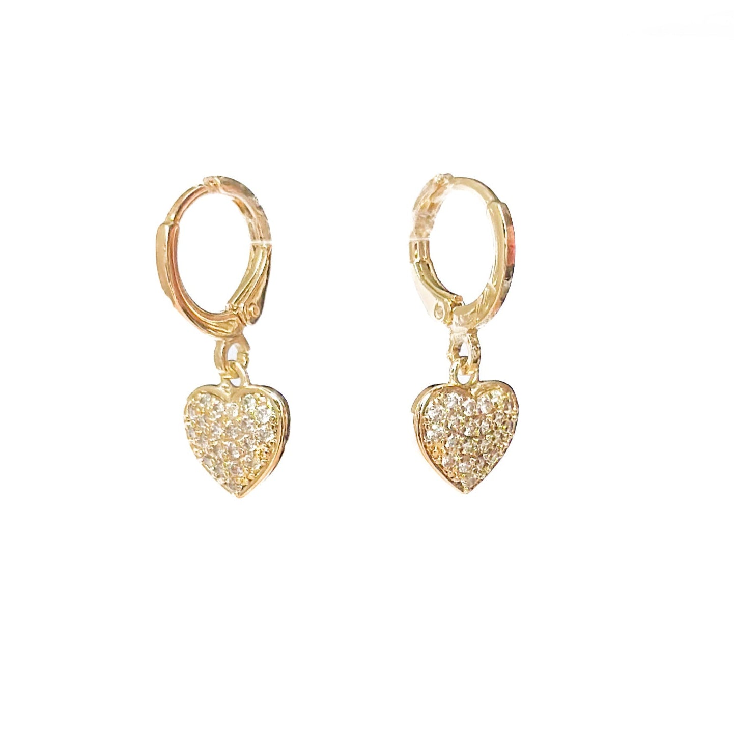 HUGGIE ORO LAMINADO CORAZON CON PIEDRA COLGANTE